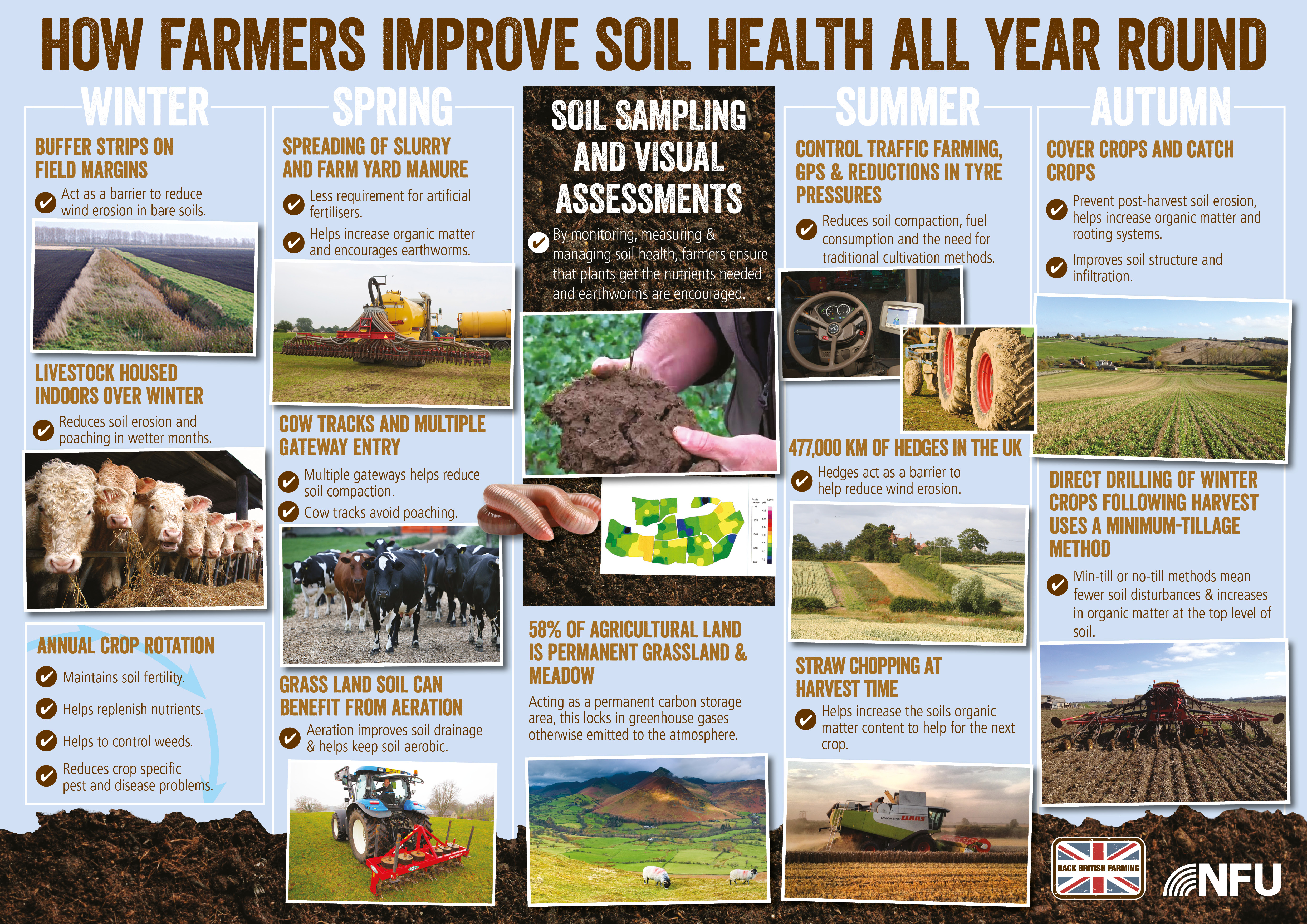 British farmers and growers are doing a great deal of proactive work to improve soil health, from routinely testing the soil's nutrient content to using drones to help understand soil structure.